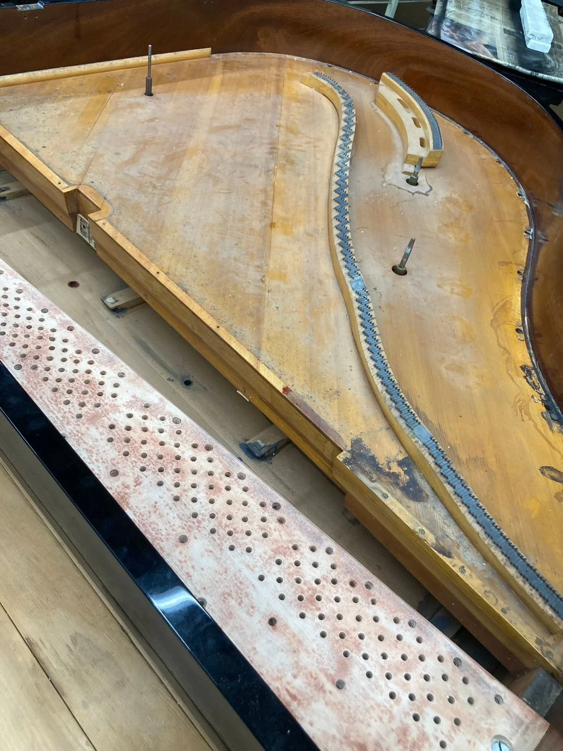 Pinblock inspected - restrung with oversized pins